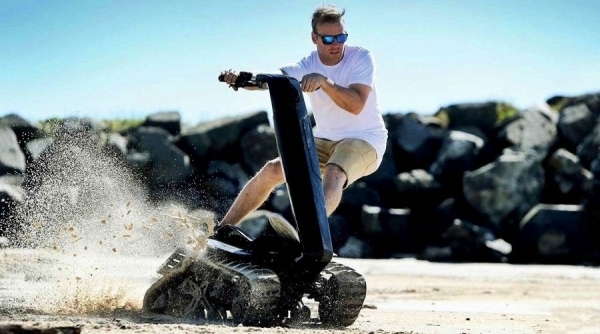 DTV骑兵坦克是由加拿大企业BPG Werks研发的一种可在雪地、沙滩、坑洼等各种复杂路面行驶的全地形履带越野滑板车。DTV骑兵坦克由一台可输出13匹马力的200cc发动机驱动,可以爬45度的坡,转弯半径为1.5米,DTV骑兵坦克的扭力甚至能将小型拖车拖在身后,最高时速可达40Km/H。DTV骑兵坦克是非常特别的驾驶方式,概念是结合滑雪板和坦克,必须依靠身体的重心摇摆来操控转向,是一种新型态的运动方式,更可以挑战您接受刺激与运动感的能力!